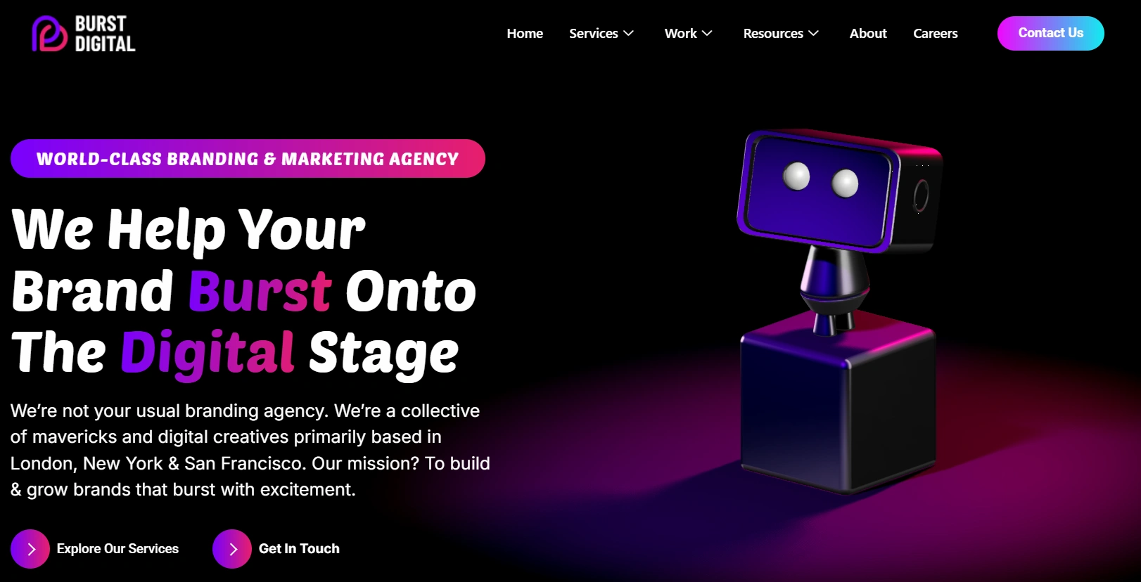 Burst describes a UK presence in London alongside international teams, and can be a fit for brands wanting broader creative and digital support around social channels.